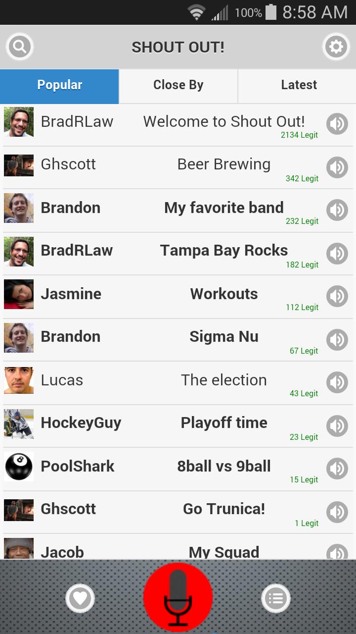 Browse the most popular shouts, the ones near you, and the latest shouts.