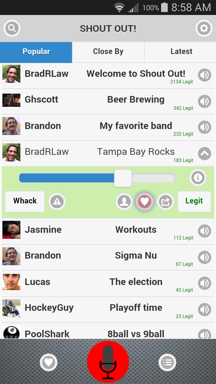 One tap to start recording your shout out and let the world hear you.