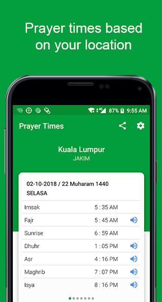 - Local and International Prayer Timetables: This app allows users to set prayer schedules according to their location. It offers prayer timetables for areas in Indonesia (KEMENAG), Malaysia (JAKIM), Singapore (MUIS), and Brunei. Additionally, the app can display prayer times based on global locations.