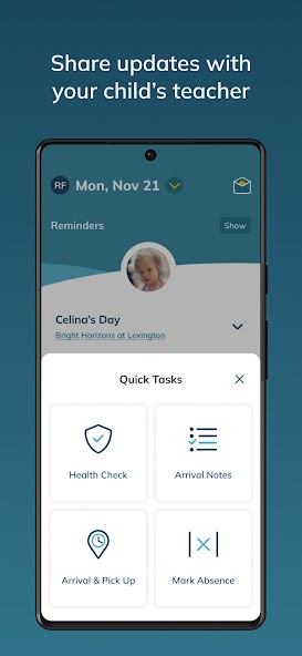 Each morning, you can share important notes about your child’s day before arrival (like how well your child slept or whether they finished breakfast) to help your child’s teacher provide the best possible care.