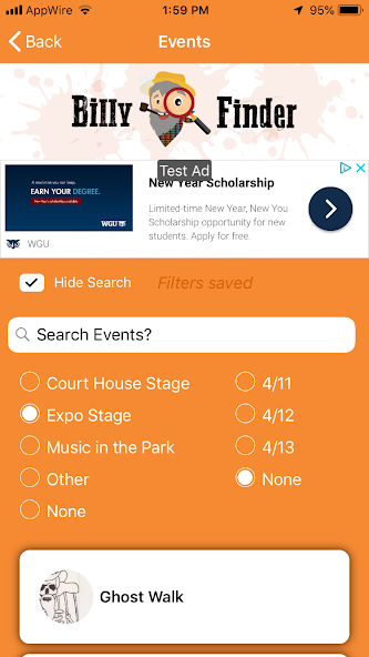 The Billy Finder mobile application is an informational and helpful guide for people to use during Pikeville, Kentucky's annual Hillbilly Day's festival.