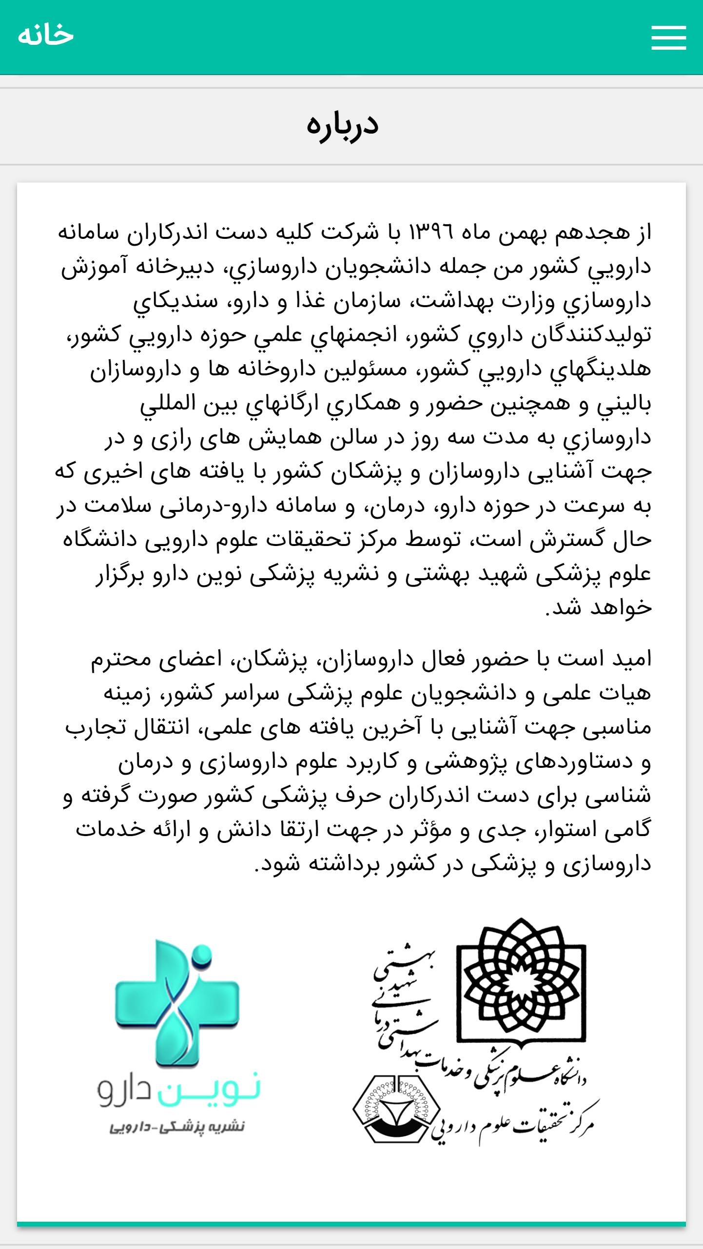 It is hoped that with the active presence of pharmacists, physicians, respected faculty and medical students across the country, it is appropriate to get acquainted with the latest scientific findings, transfer research experiences and achievements, and the application of pharmaceutical sciences and therapies for medical practitioners in the country, and a steady, serious and effective step towards promoting medical services.