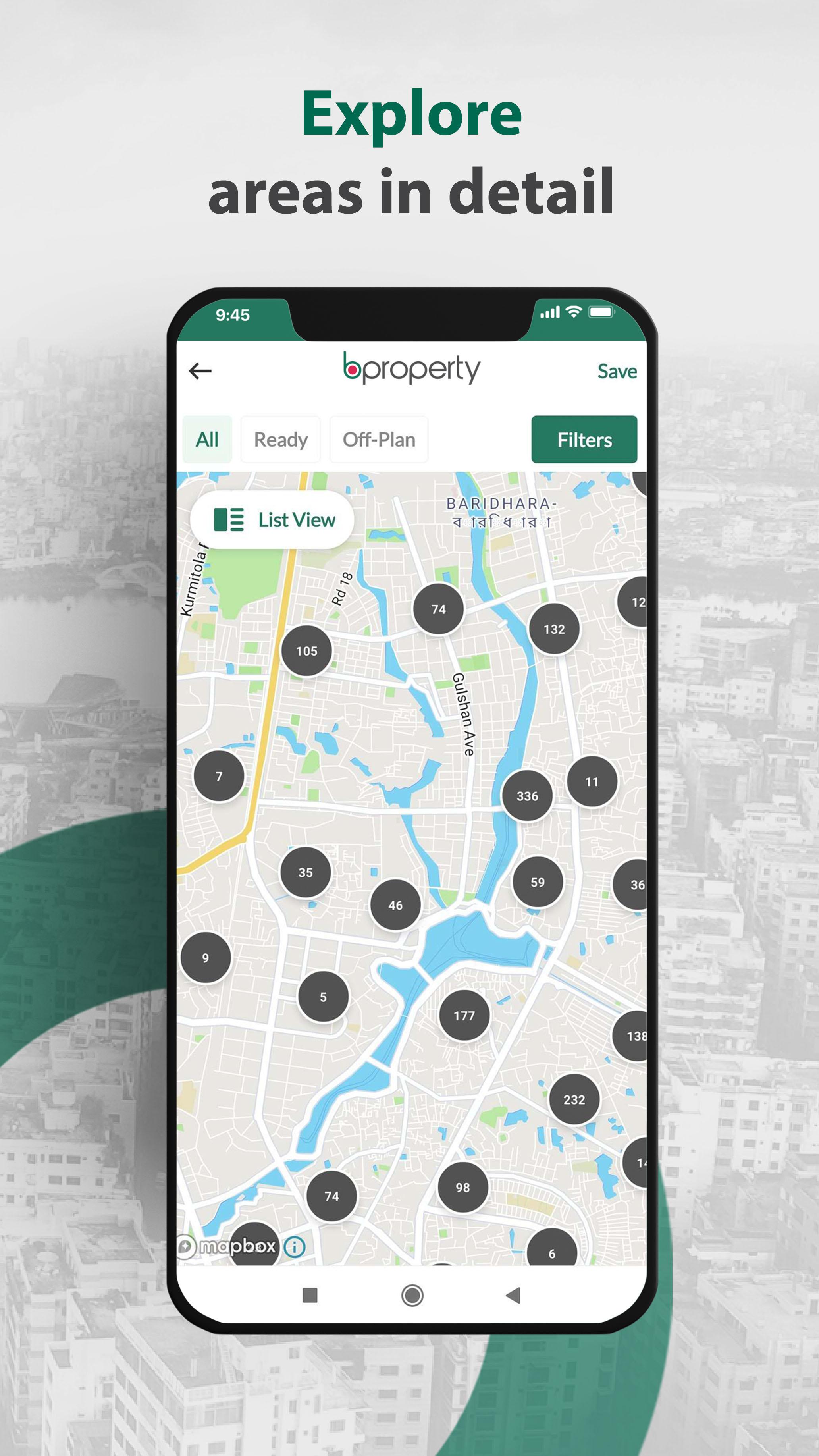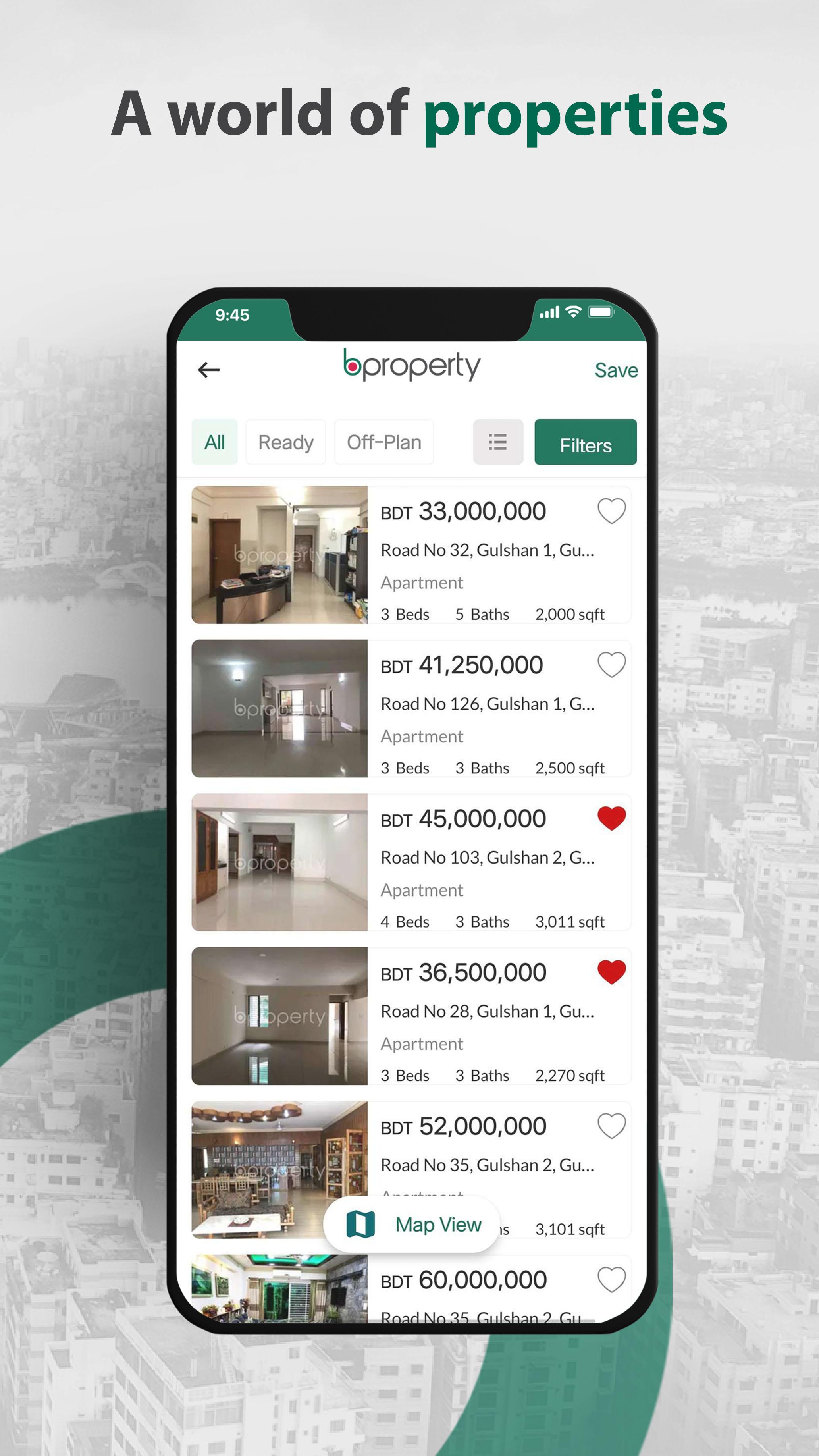 The Bproperty App connects you with a huge database of active properties from all over Bangladesh, allowing you to find apartments, plots, offices and shops – whether for sale or for rent – on the go.
