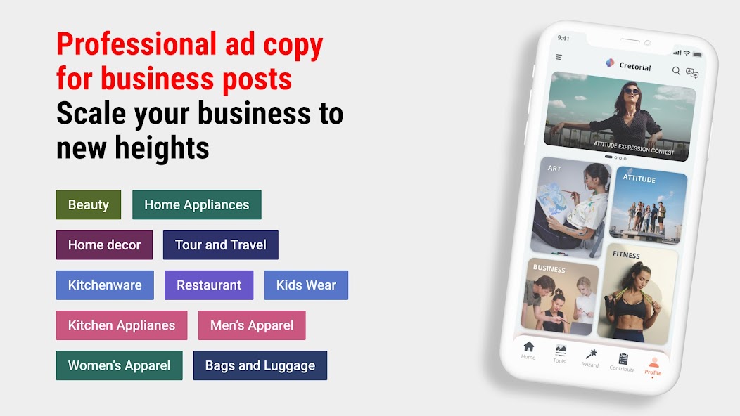 - Ad copies and matching hashtags for business - Beauty, Home Appliances, Home Decor, Bags and Luggage, Kitchen Appliances, Kitchenware and Restaurant.
