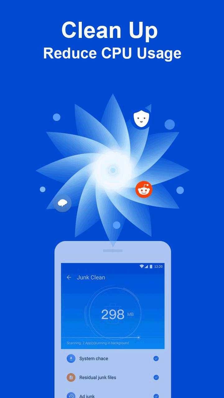 Reduce CPU usage close heavy resources consuming apps to reduce cpu use and restart process to lower cpu resources make performance of phone better and phone cooler. It's function is close apps and process to clean RAM memory. Max Clean to cache clear