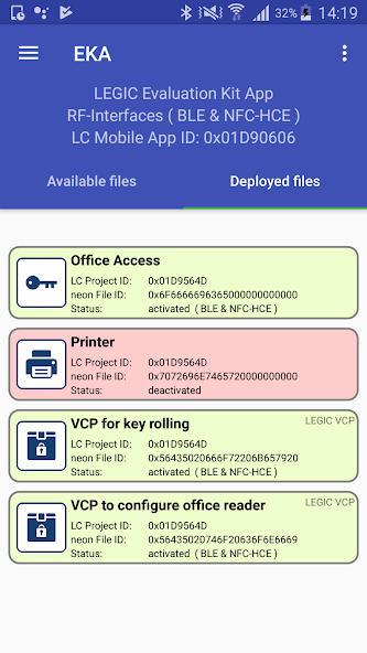 It supports both, four preconfigured LEGIC neon files, exactly as supported with the previous EKA-4300, but also interactive deployments of data or configuration (VCP) files onto registered mobile apps through LEGIC Connect.