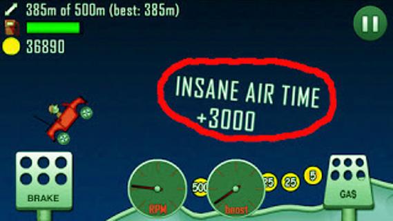 As a general rule, it's never a good idea to simply hold the throttle down at full speed. Instead, pump the gas gently to just about clear steep climbs so that your car will settle gently into the descent. You won't earn much air-time for playing it cautiously, but you will survive longer and gather more coins as a result.