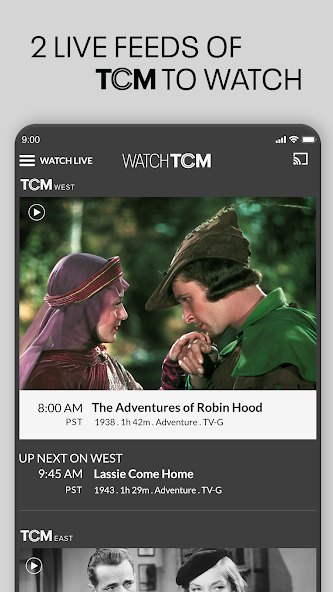 TWO LIVE STREAMS: Enjoy both an East and West Coast feed of Turner Classic Movies. Watch 2 different movies LIVE at any time, always UNCUT and COMMERCIAL FREE.