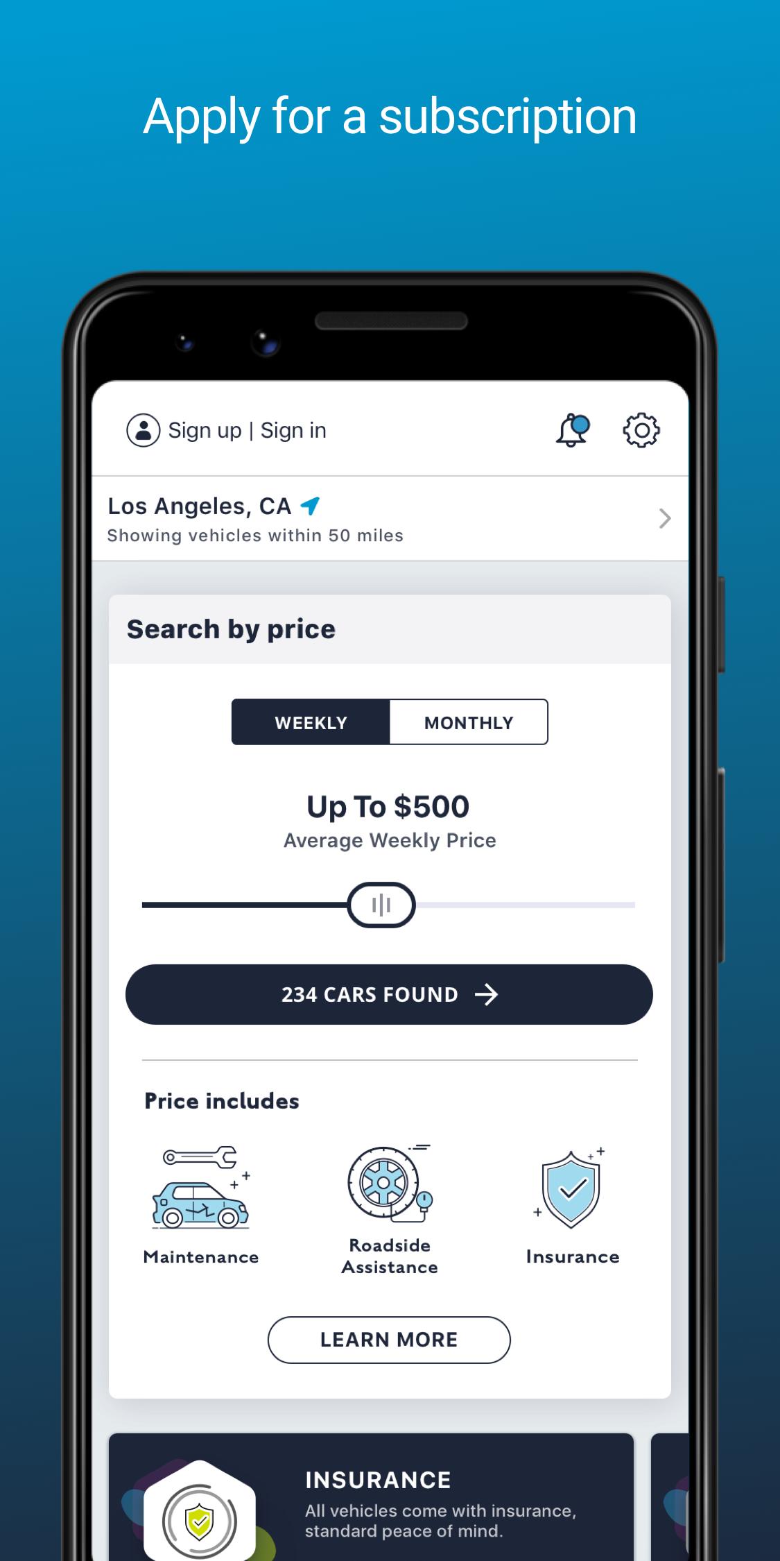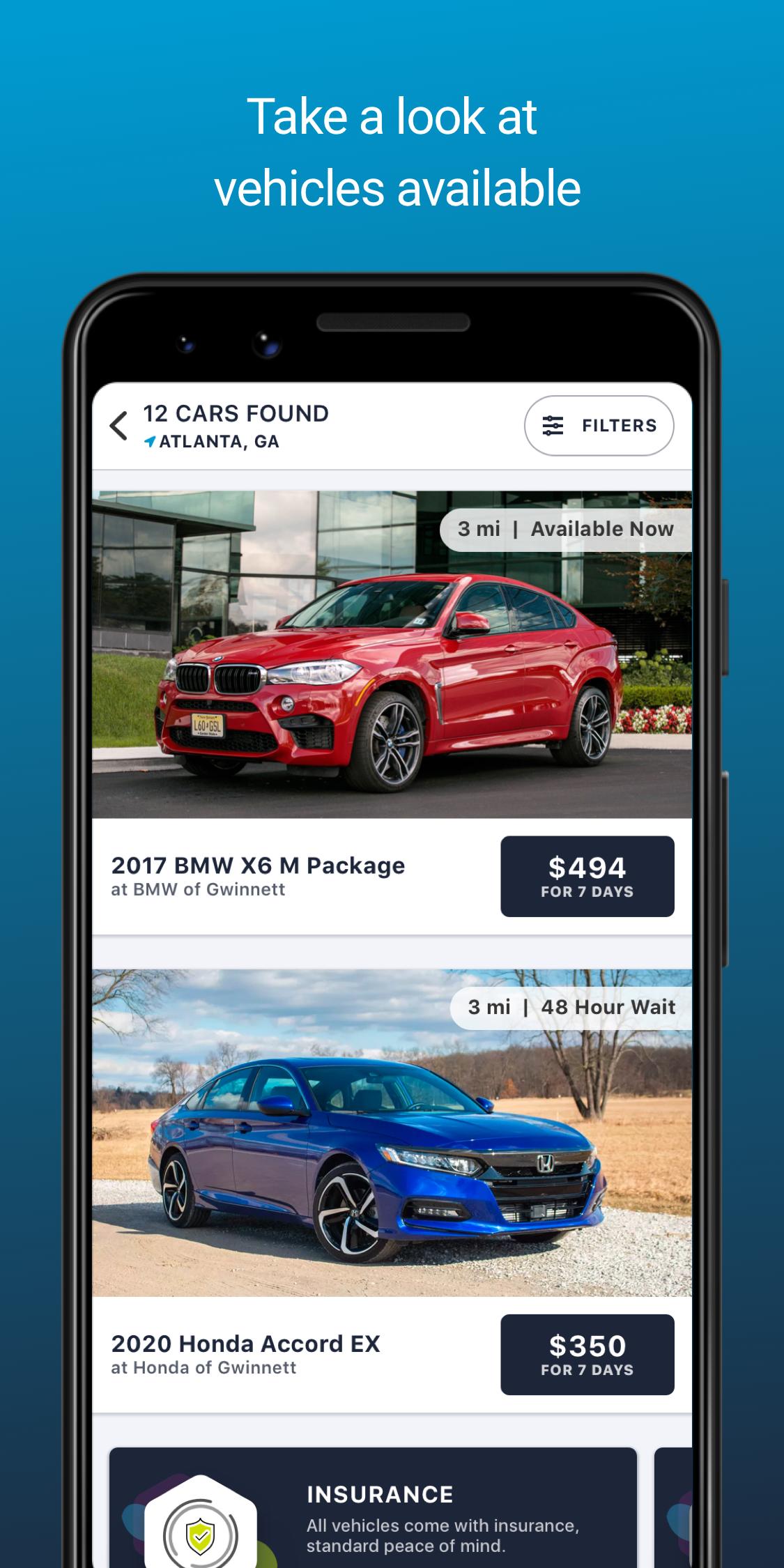 Download the app: Sign up in minutes to browse cars.