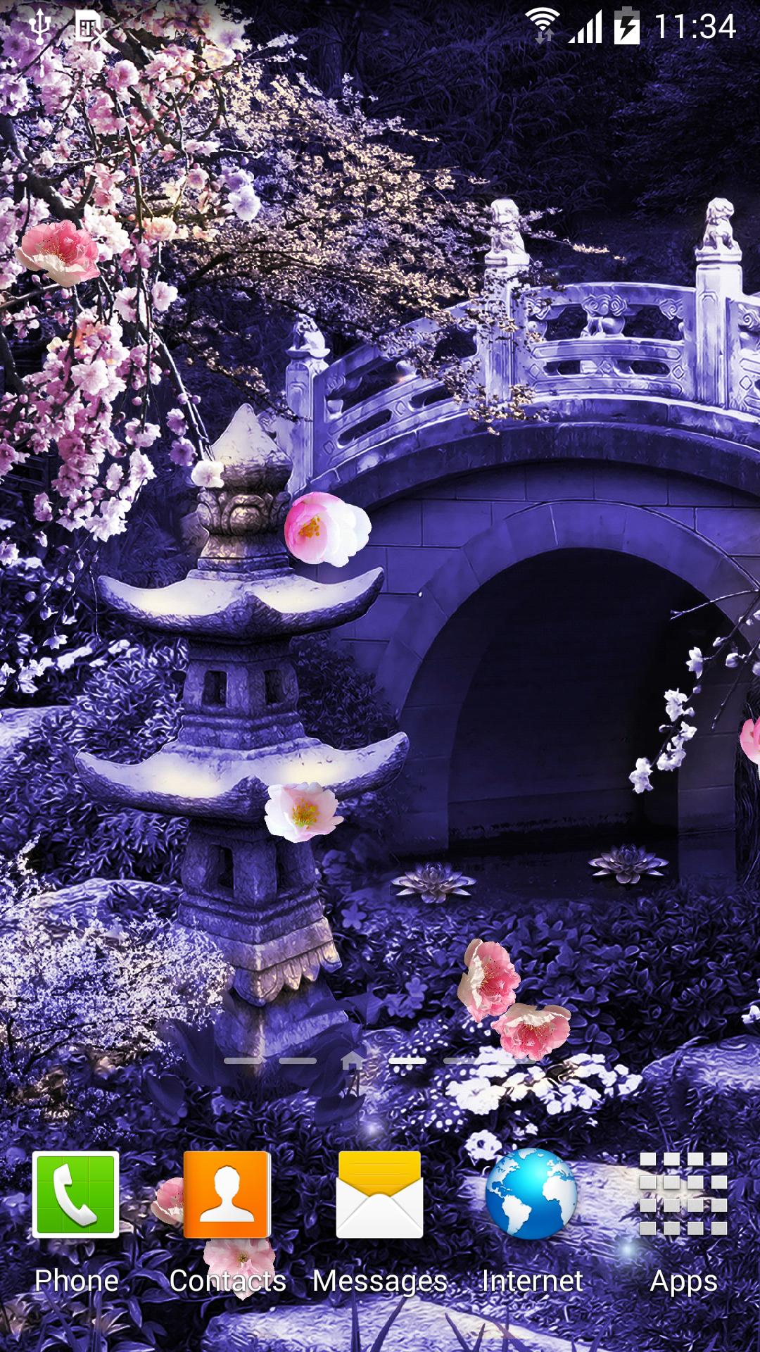 Mysterious East is associated with the beauty of the cherry blossoms (Sakura). In the spring, when nature comes alive in beautiful oriental gardens cherry trees blossoms and fragile cherry petals, flowers and leaves falls down, people come there to enjoy the beauty of the Japanese cherry blossom. Now thanks to our Mystic Sakura Live Wallpaper you also have opportunity to enjoy Sakura in the mystic oriental garden at night.