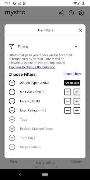 • Configure Mystro to auto-decline the offers that don't pass your filters