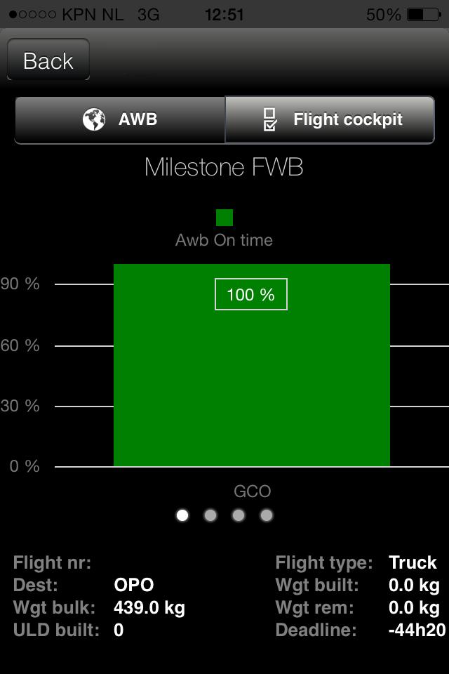 The cockpit overviews drill down to give you a more detailed insight of each AWB on that specific flight and reflects all of our agreed milestones with you, our customer.