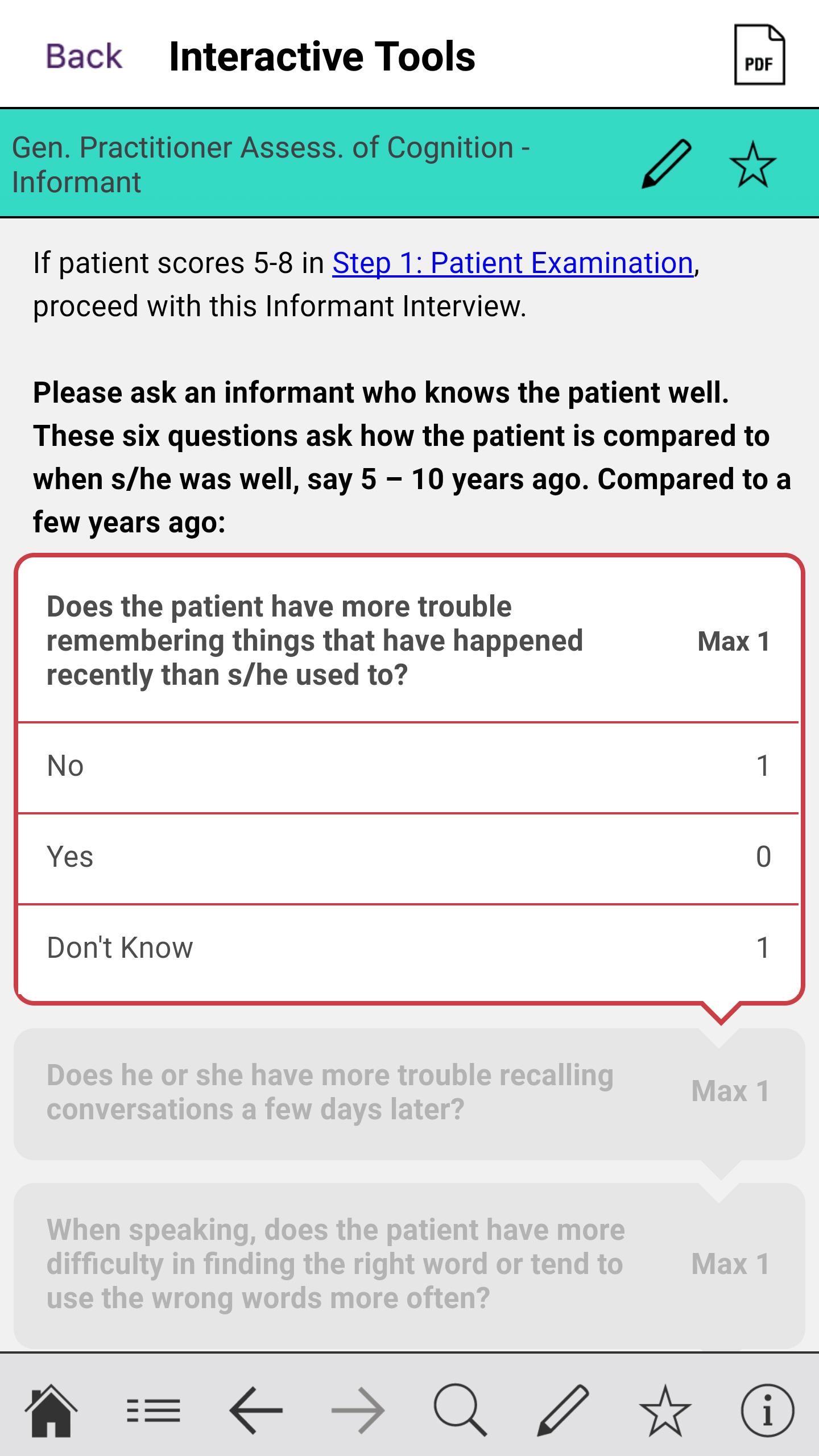 • Interactive tools to assess cognition and function, including the Mini-Cog™, Clock Drawing Test, Saint Louis University Mental Status Exam (SLUMS), Functional Activities Questionnaire (FAQ) and more