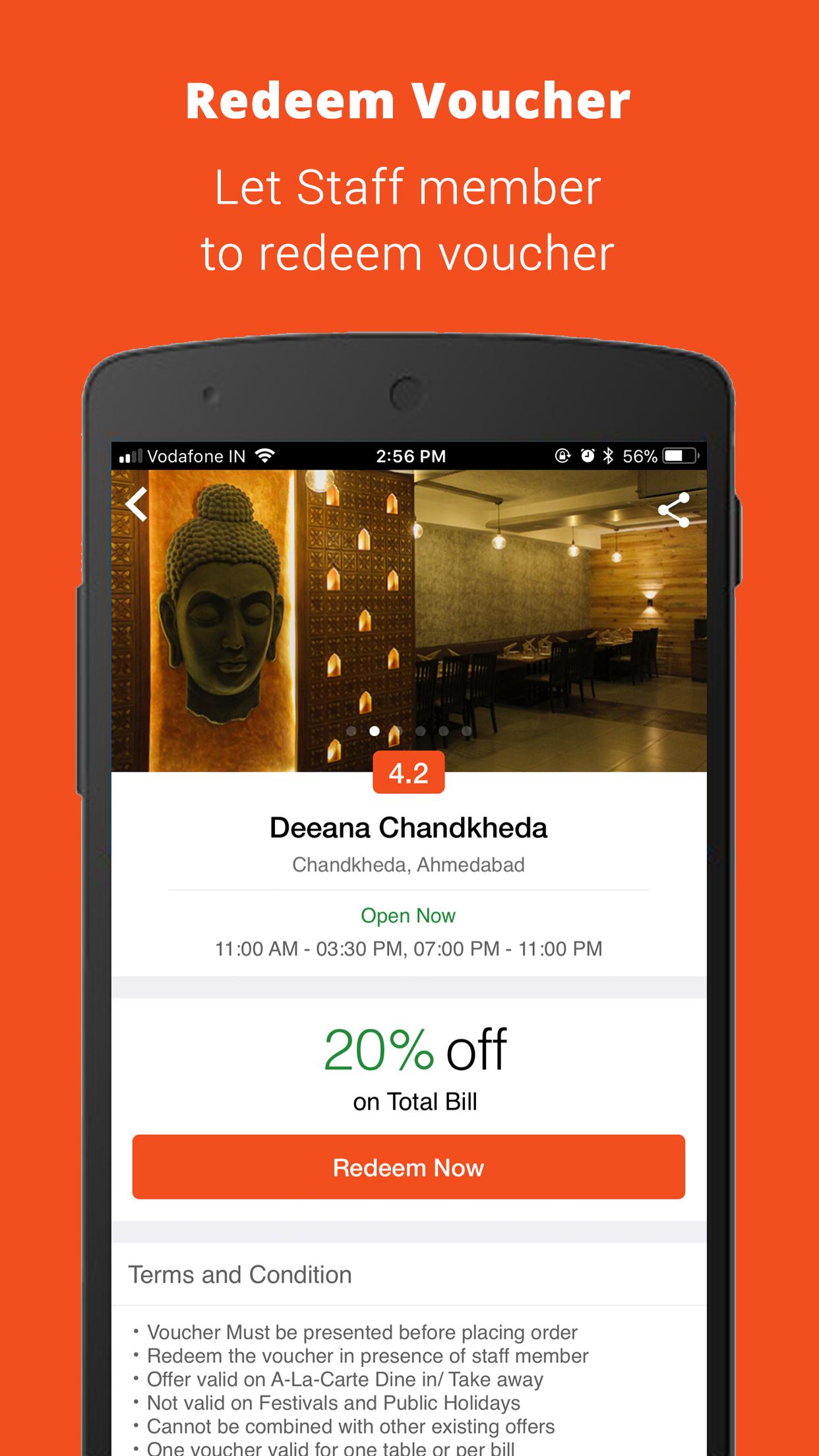 Find restaurants/cafes nearby you: now you can find the best restaurants/cafes who offers discount by simply turning on your GPS location.