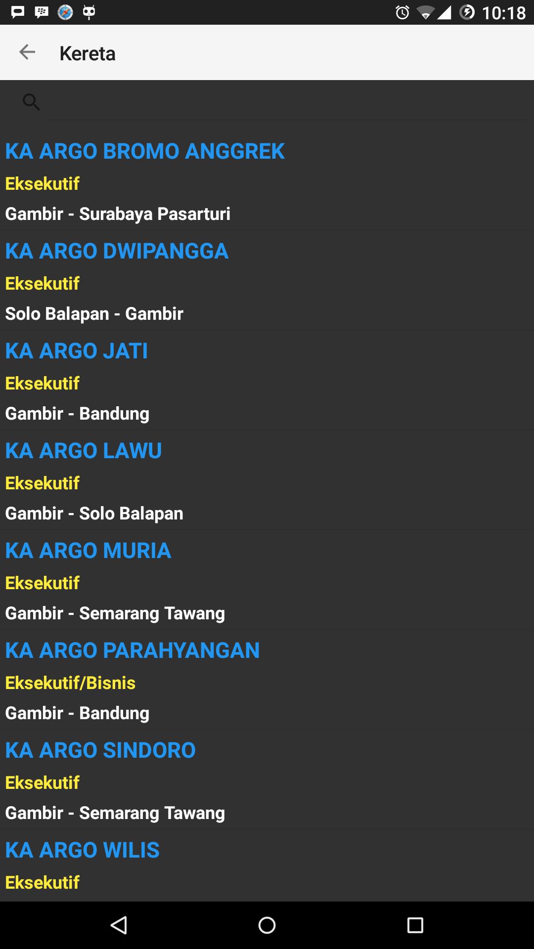 Get latest train schedule simple and easy. Application to get latest train schedule at Indonesia railways in simple and easy way on your smartphone. The apps will get content update automatically from our server. Data gathered from various resource, value and content are dynamic and changing from time to time.
