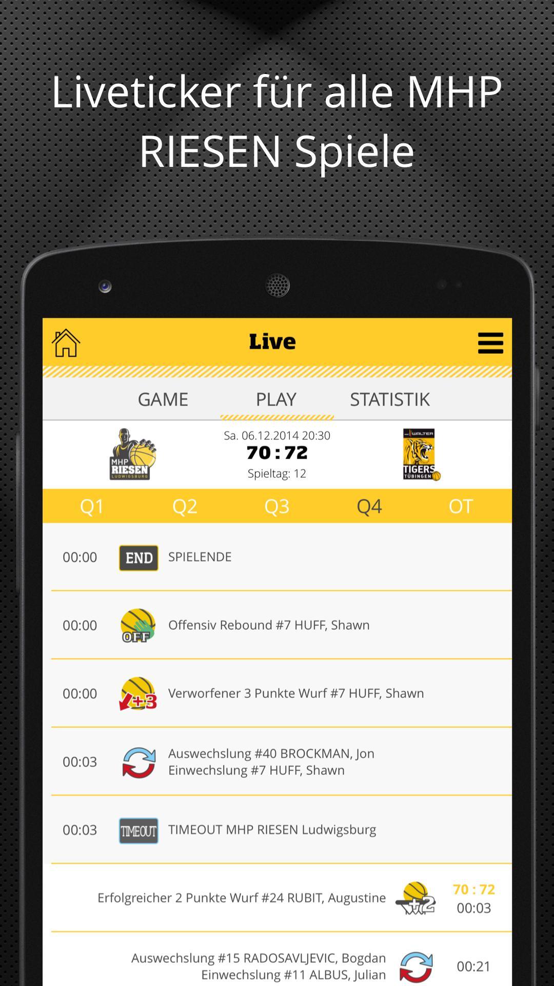 Your & we - your MHP RIESEN Ludwigsburg always in view! The official Android app of the successful team from Ludwigsburg: Be everywhere and everywhere close to the action around your favorite club - powered by Sparda -Bank Baden Württemberg.