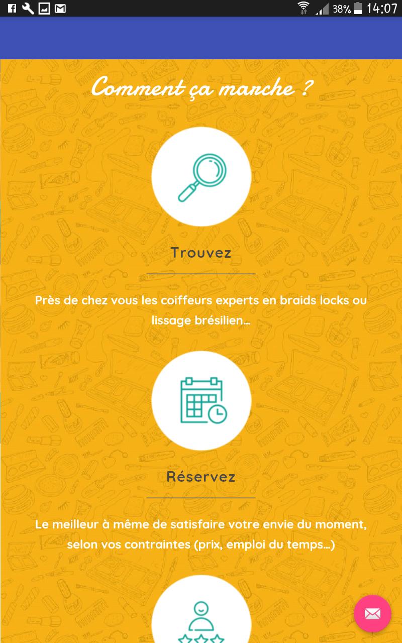 Find a professional who understands you in just a few clicks! Hairstyle (African braid, braids box, braid hook, natural hair hairstyle, extensions, Brazilian smoothing, locks, hair care ...) Makeup, nail and pedicure ...