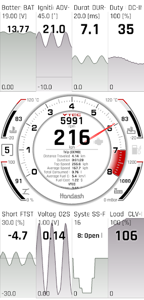Hondash is the most capable monitoring tool and virtual dash for Honda (OBD1, OBD2A, OBD2B), compatible with: