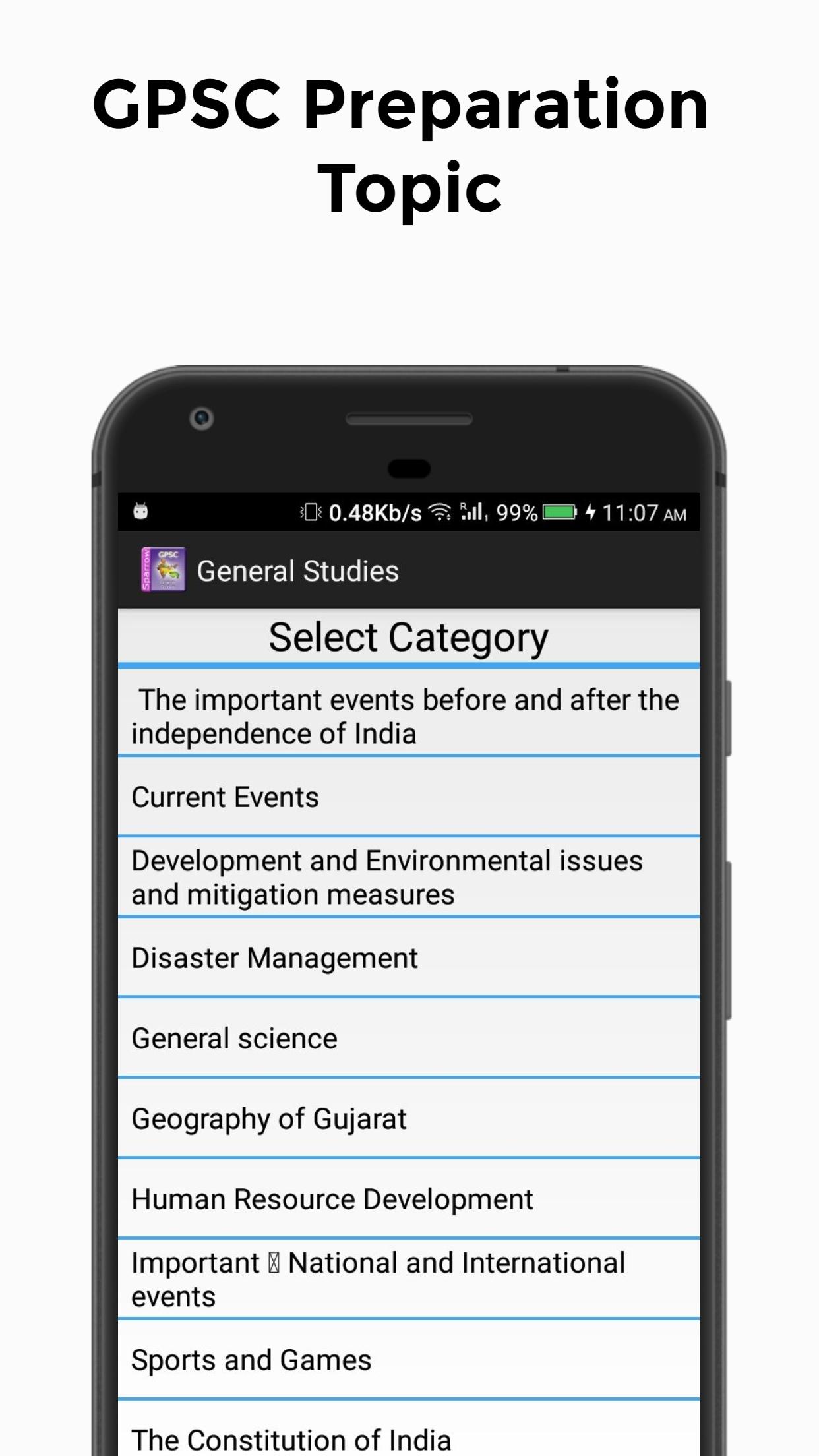 GPSC (Gujarat Public Service Commission) is one of the reputed exams and thus it is very important to crack the exam with the highest score. General Studies Quiz App for GPSC is a very useful app to prepare for the GPSC. You can test yourself and check for your knowledge. We know that Practice Makes Men Perfect so this rule also applied to this app. You can test as much as possible so that more knowledge can be gained. There are many categories which help you to prepare yourself for all the questions related to General Studies. Some of the categories are mentioned as below: