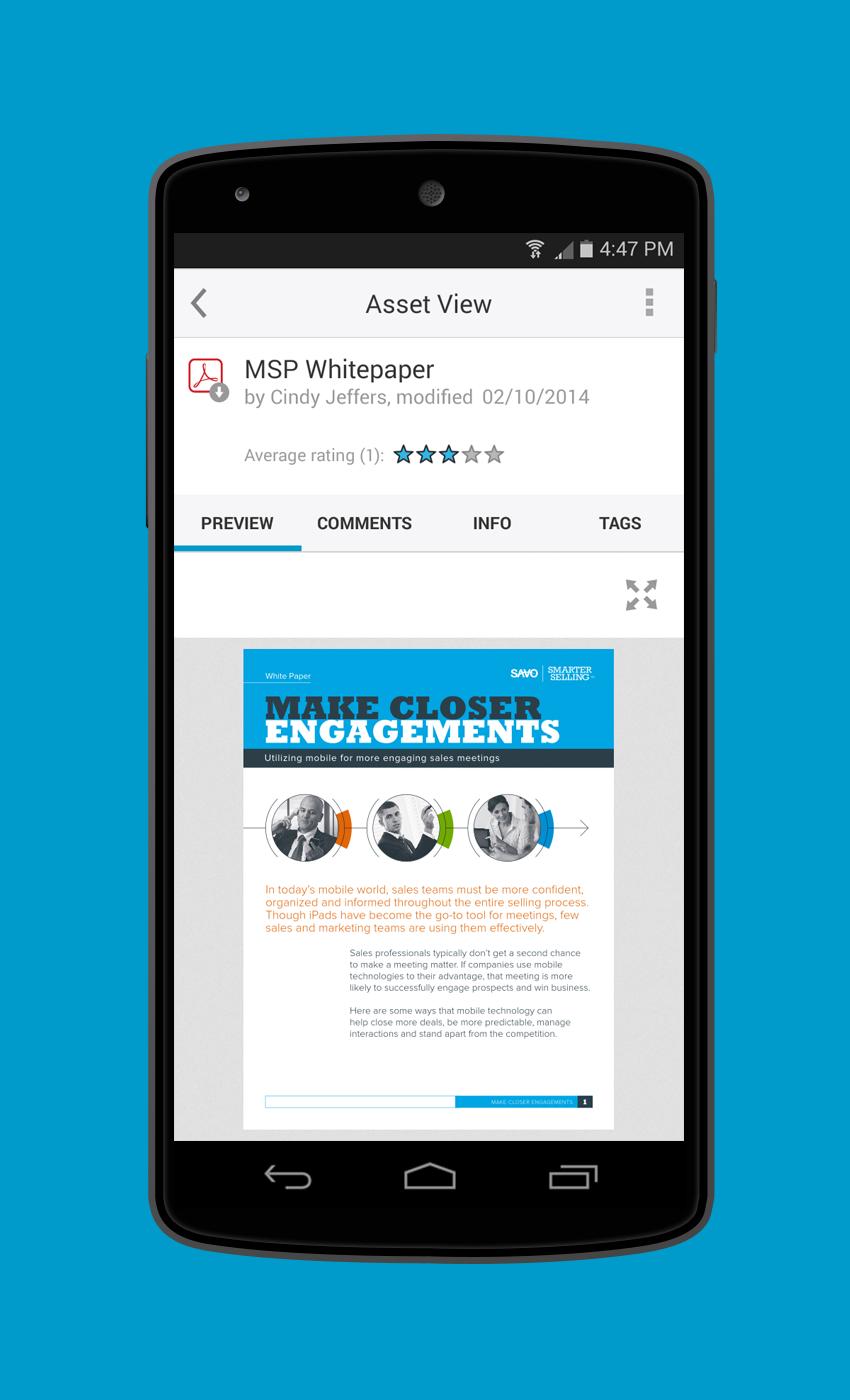 SAVO enables road warriors to leverage content critical to a sales conversation.