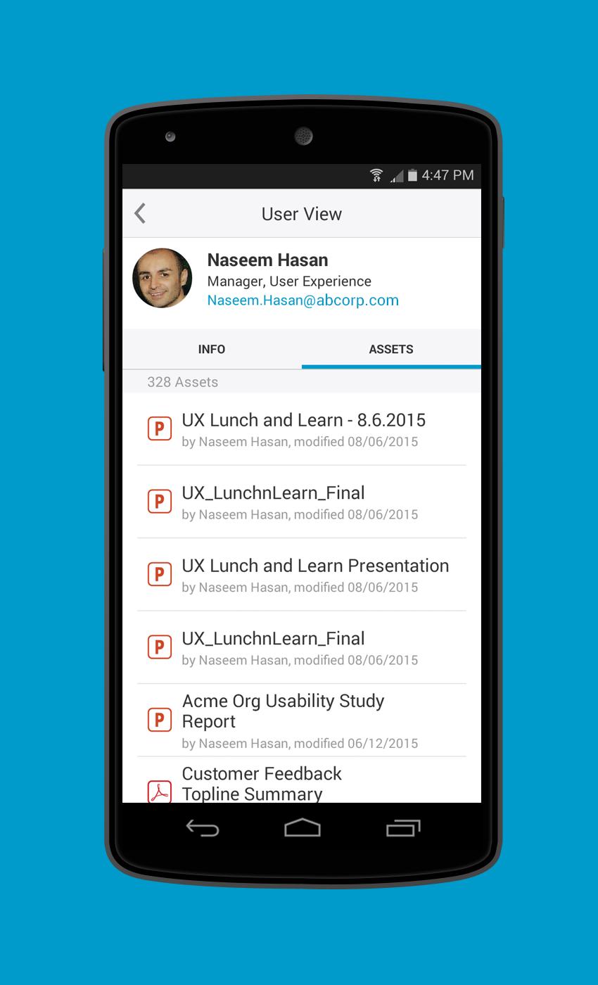 - Find subject matter experts, materials, and key information for sales conversations