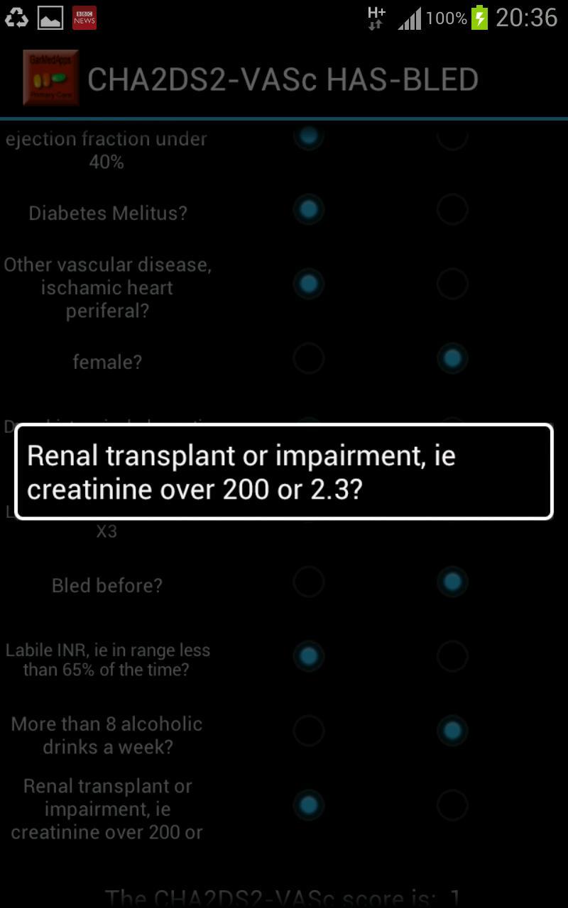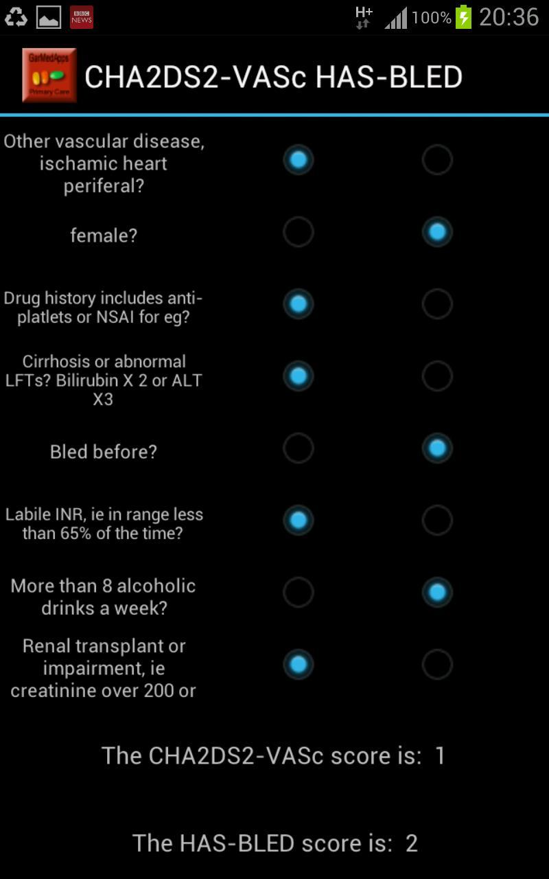 Scoring system for CHA2DS2VASc and HAS-BLED (HASBLED)