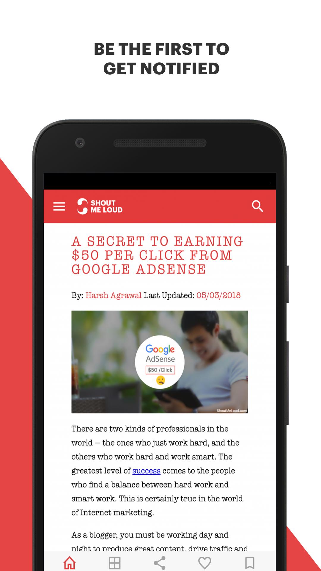 The ShoutMeLoud Android app is for bloggers, internet marketers, and entrepreneurs who want to create a successful, profitable, and fulfilling internet lifestyle through the power of their smartphone.