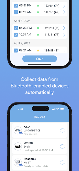 Blood Pressure Diary App by MedM syncs with the following brands of smart blood pressure monitors: A&D Medical, Andesfit, Andon Health, AOJ Medical, Beurer, Bodimetrics, CliniCare, Contec, Dovant Health, Easy@Home, ETA, EZFAST, Famidoc, Finicare, FirstMed, Fleming Medical, ForaCare, Health&Life, HealthGear, Indie Health, iProven, Jumper Medical, Kinetik Wellbeing, LEICKE, Medisana, MicroLife, Multi, Omron, Oxiline, OxiPro Medical, PIC, Rossmax, SilverCrest, TaiDoc, TECH-MED, Transtek, TrueLife, Viatom, Welch Allyn, Yonker, Yuwell, Zewa, and more. For the full list of supported devices, please visit our website: https://www.medm.com/sensors.html