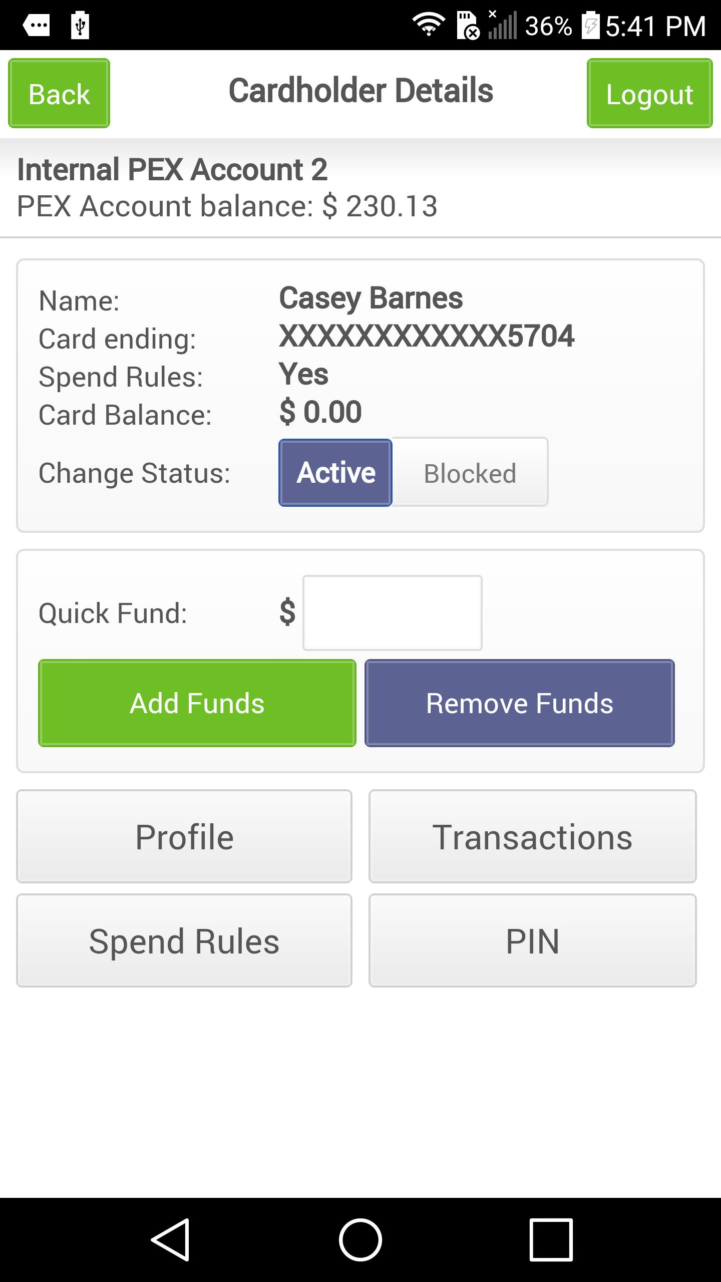PEX Admin is the free mobile extension of the PEX Visa® Prepaid Card service for business. Perform critical day to day cash management functions instantly from the road or a job site directly from an Android device. Enjoy fast and easy access to a PEX account with the ability to: