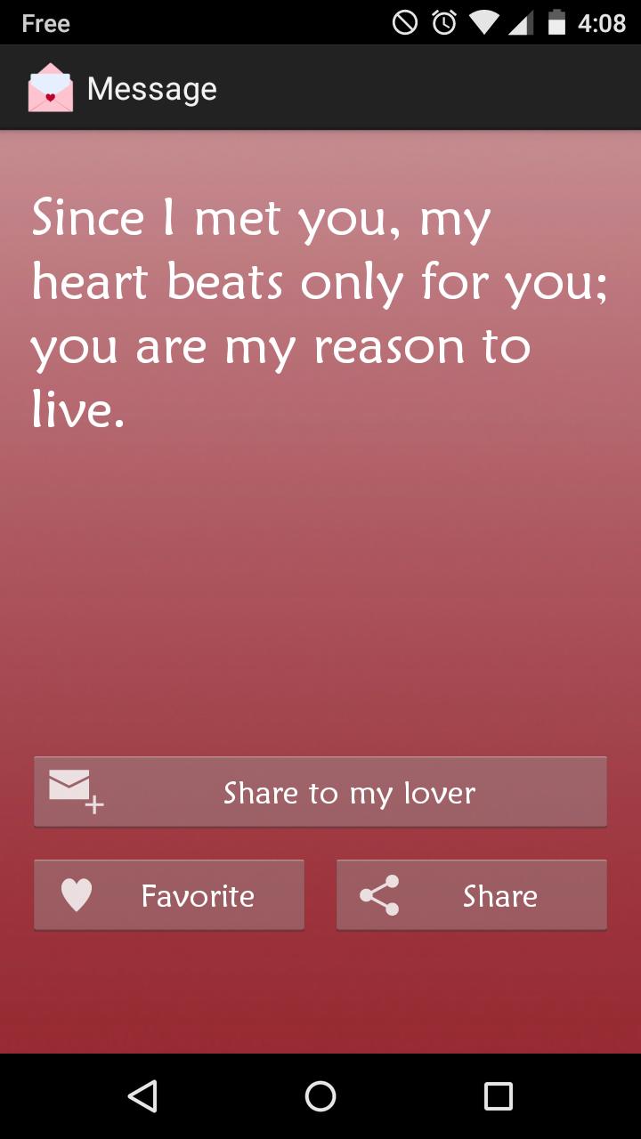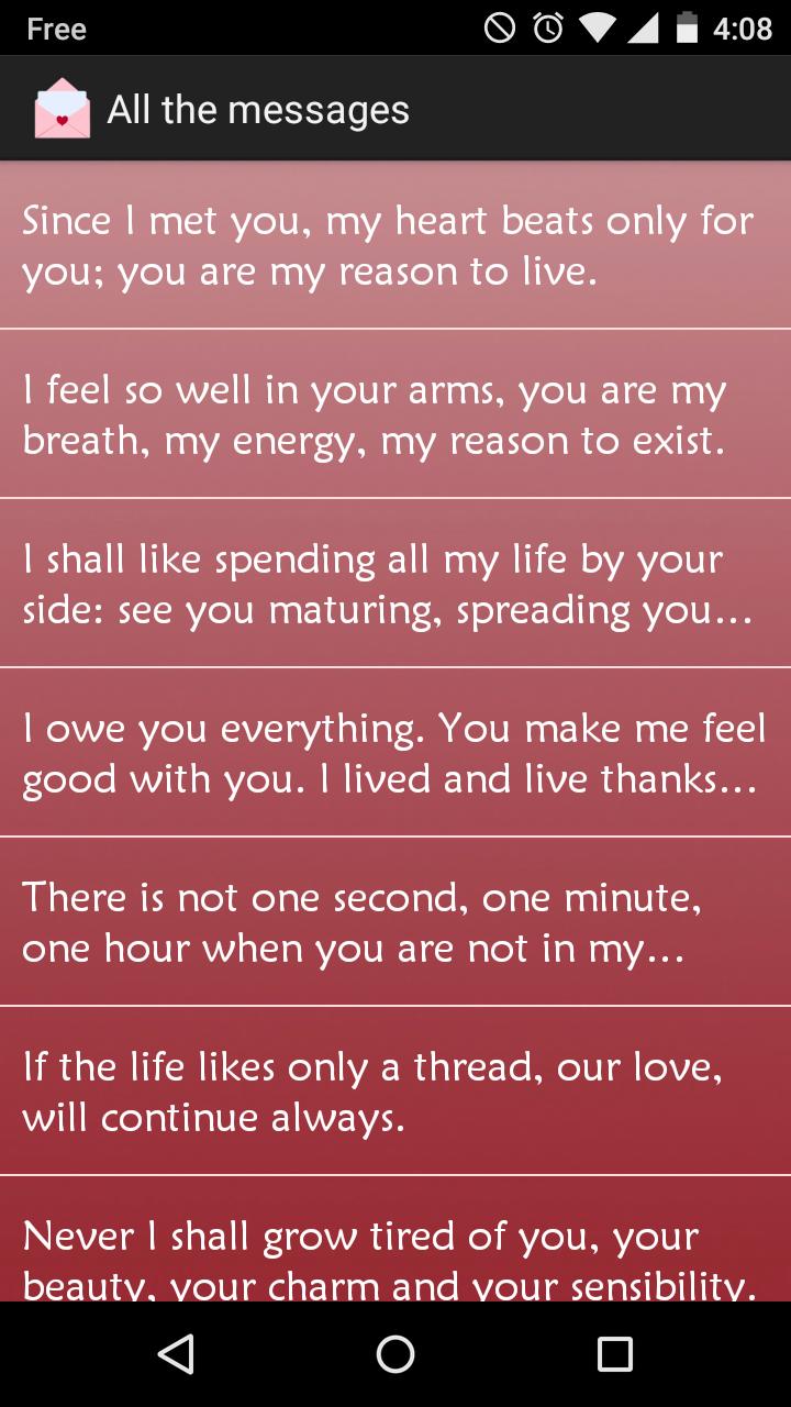 Simply launch the application, select the phrase you want to send to your lover and send it. Sentences are available by categories and you can keep your favorite phrases.