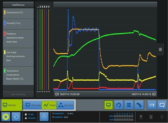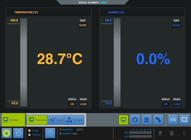 MyKratos™ control software allows to manage, monitor, assist the chamber in any place at any time in multiple ways (Wi-Fi, Ethernet, UMTS) through mobile and desktop devices. The chamber wireless (Wi-Fi) connection allows operation through tablets and smartphones (iOS 7 or Android 4.2.1 compatible). The operator interface can be remotely accessed also through the chamber connection to the client’s LAN or via GPRS/UMTS (upon activation of a SIM card data).