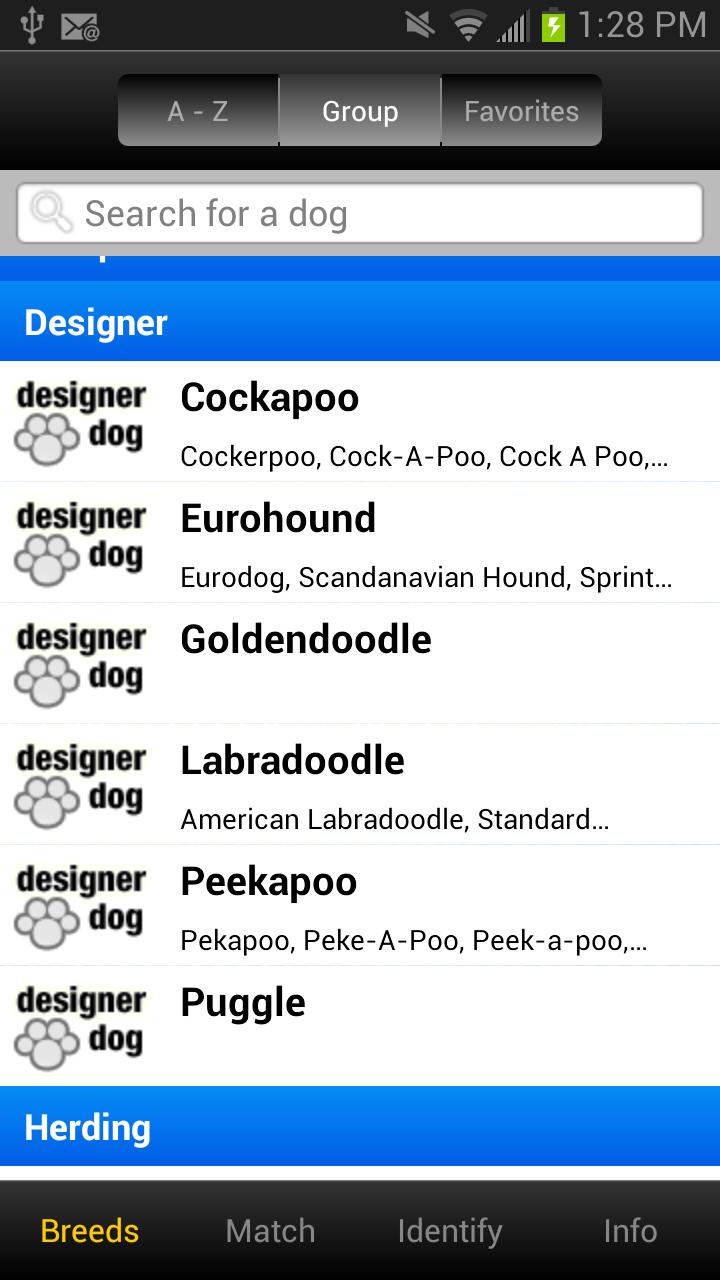 The IDENTIFY feature gives you the ability to search for a breed based upon physical attributes. The next time you see a dog and you're not sure what breed it is, the IDENTIFY screen can quickly figure out the answer. By simply selecting some of the dog’s physical characteristics such as “floppy ears” and “pushed in face” you'll find out the mystery breed’s name in no time.