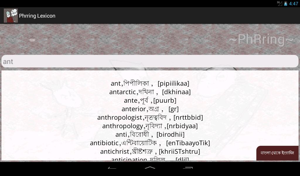 This is PhRring English to Bengali and Bengali to English dictionary (অভিধান)