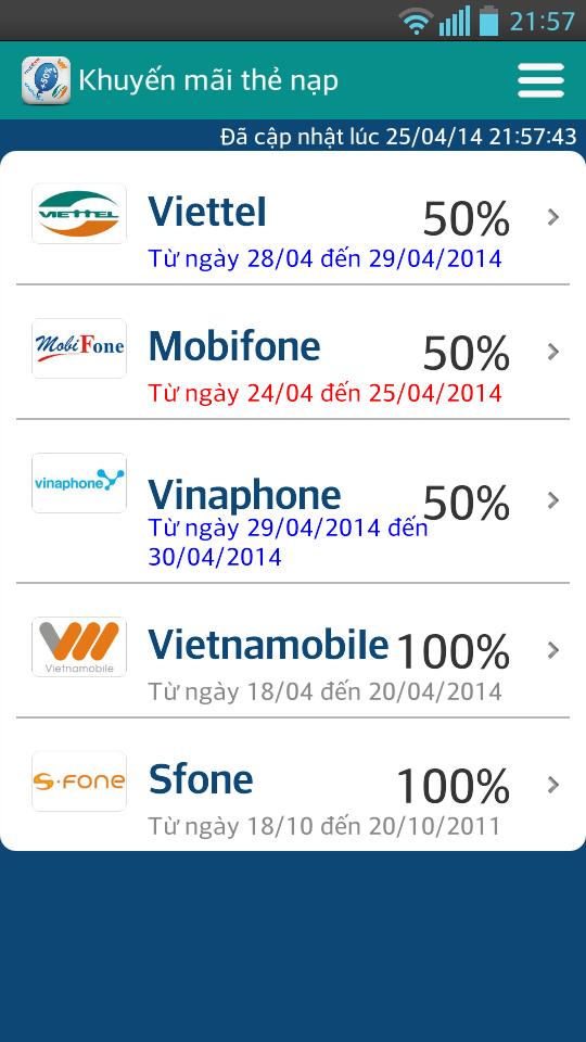 Khuyen Mai Nap The is a free application on mobile phones that help you not to miss any information from the current network operators in Vietnam.
