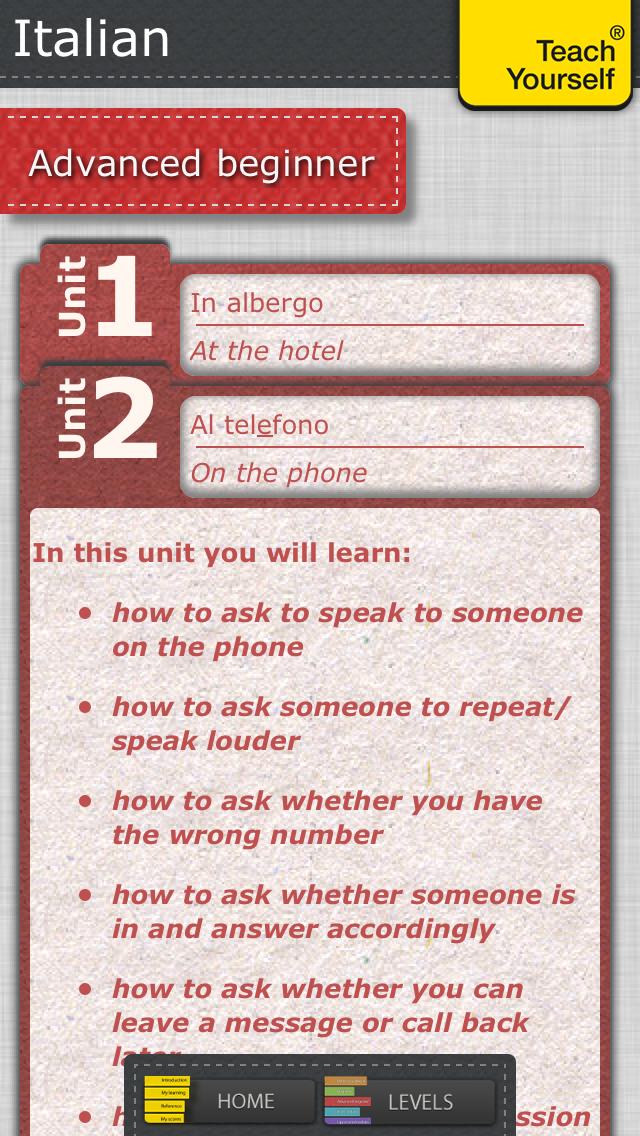 Teach Yourself’s Italian app won’t simply get you speaking Italian; it will help you confidently master all 4 skills equally: reading, writing, listening and speaking.