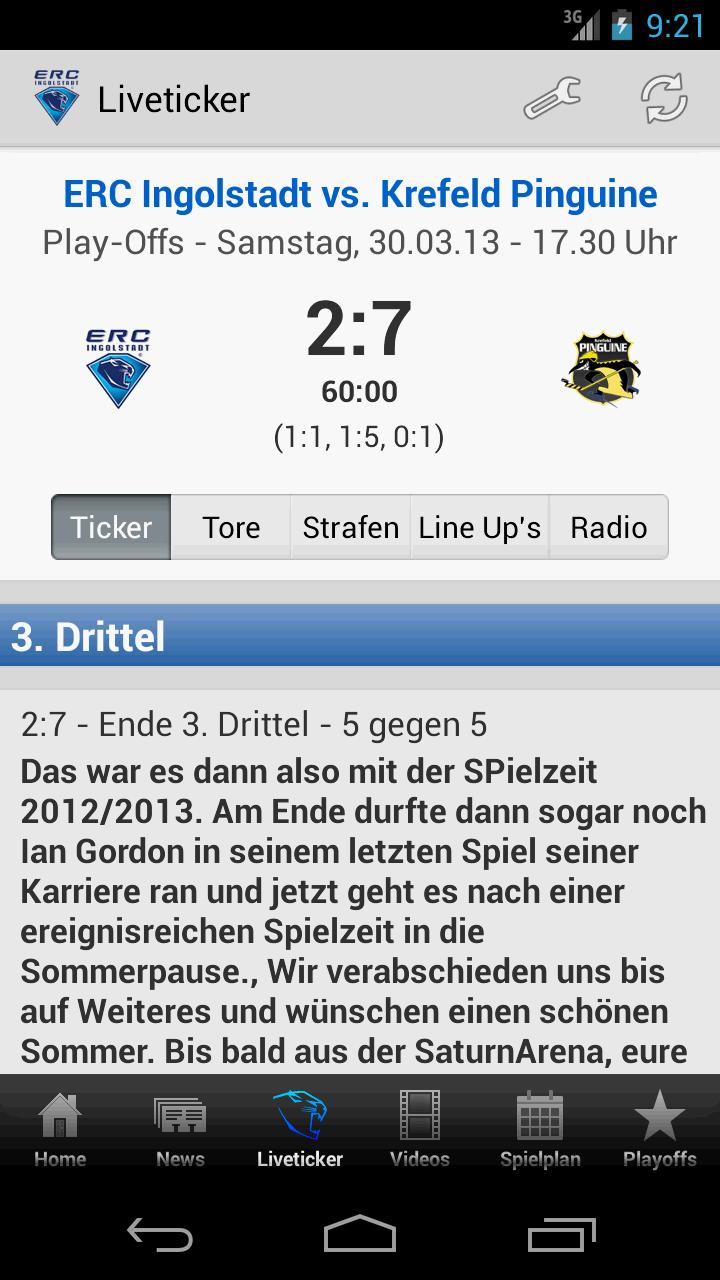 The ERC Ingolstadt Android app offers many great features for hockey fans and especially for fans of ERCI.
