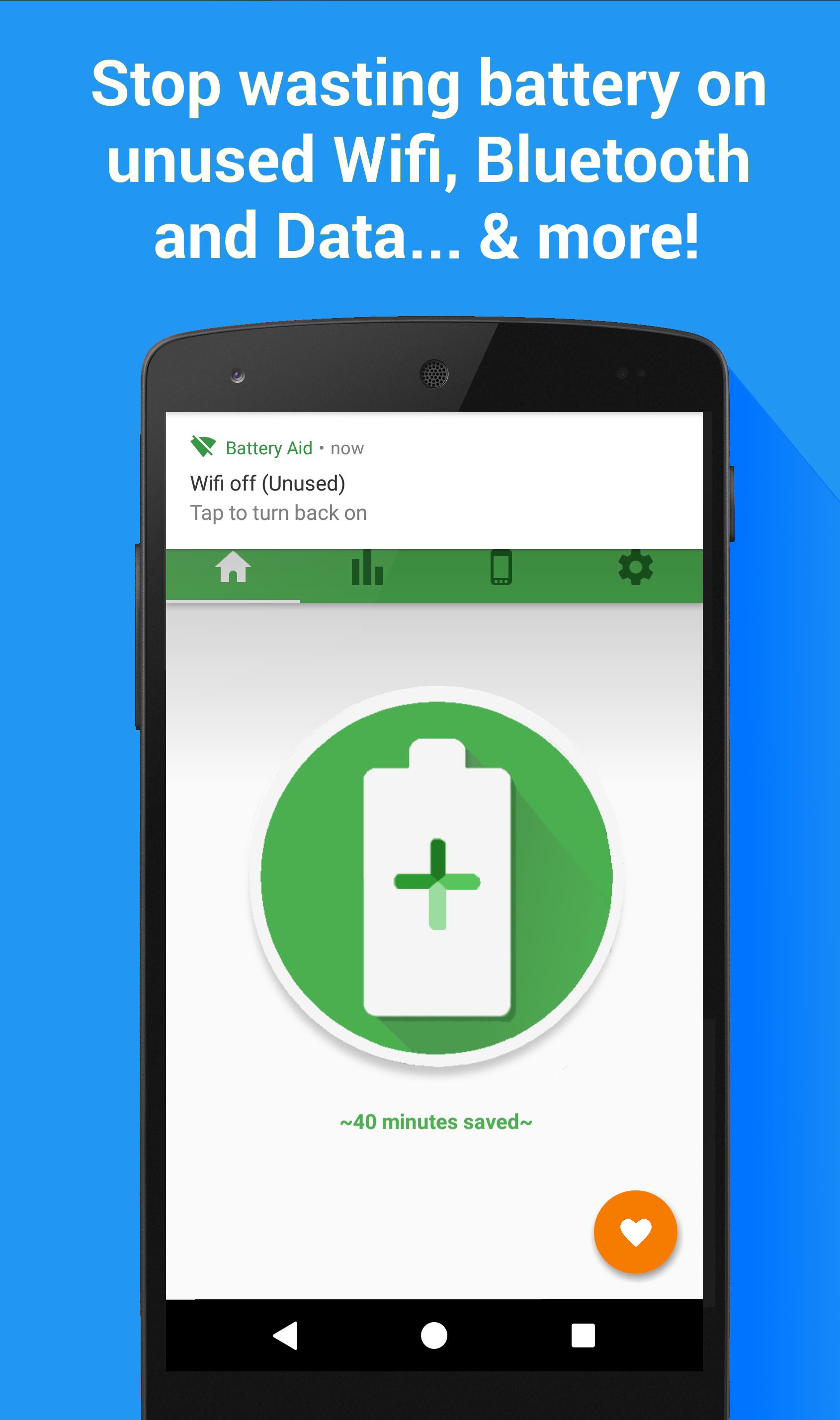 Aid works alongside your device & Battery Saver mode to increase battery life even further. No ads!