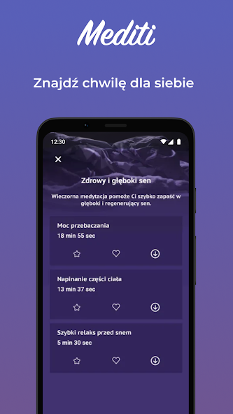 Download the free Mediti application and gain access to meditation recordings tailored to specific life situations. Regular meditation will help you cope better with stress and derive more joy from everyday life.