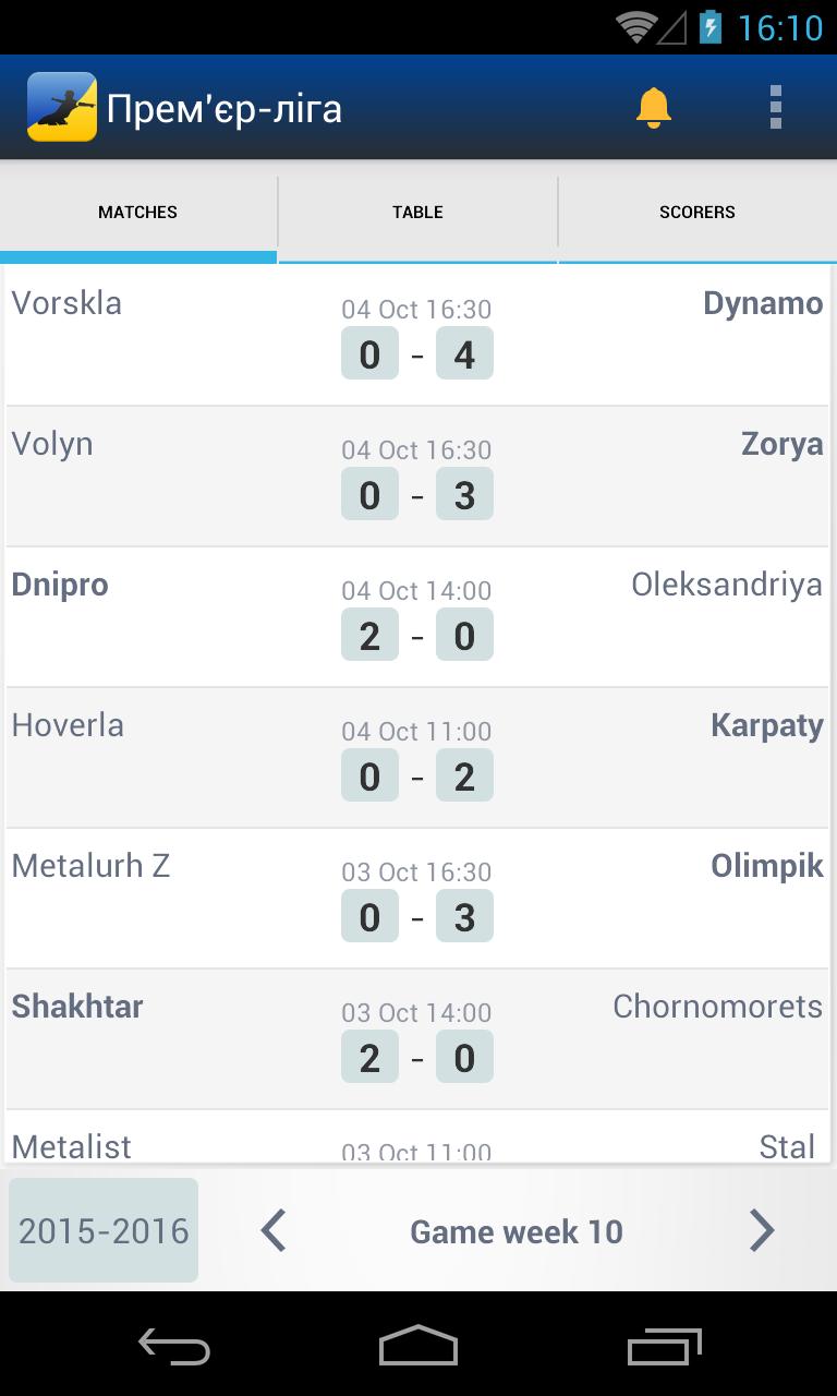 - Scorers - top scorers for the whole league and for each team