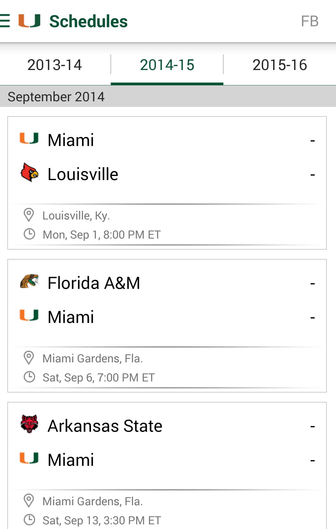 Get the latest news, scores and schedules for Miami sports developed specifically for your Android device. The official Miami Athletics app will give you mobile access to all Hurricane sports.