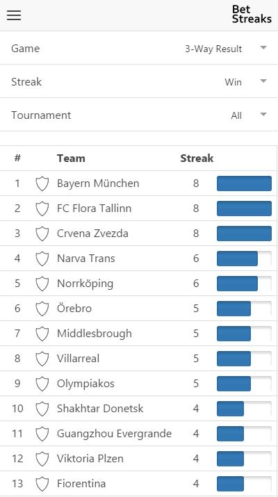 It is now easier than ever to reach Bet Streaks and form status of football teams. Bet Streaks follows matches on active tournaments, turns results into form series and serves final statistics with user friendly tables for you. It is designed to help you with your bet estimations. Some of the features you can find within app: