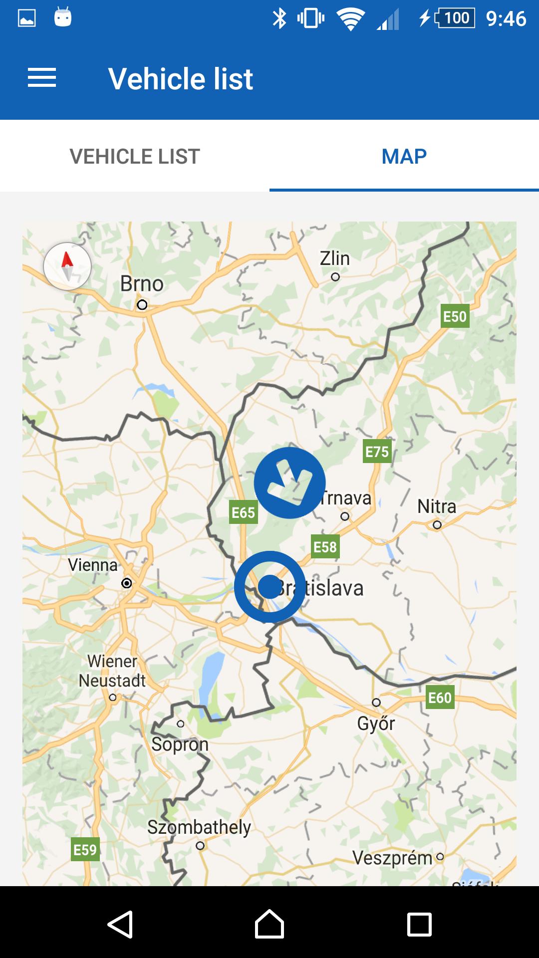• ACTUAL LOCATION OF VEHICLES ON GOOGLE MAPS – actual location of all the vehicles on Google Maps, after tapping on the vehicle, you can display its details – driver name, odometer status, ignition status, speed, altitude, fuel status, temperature etc.