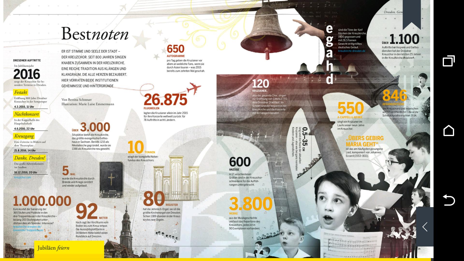 City travelers, art and cultural-interested, students, scientists, entrepreneurs and of course the Dresdeners themselves- for everyone, the "Dresden Magazine" has the most important events of the year 2016 and invites you to discover, revive and celebrate the Elbstadt. An edition in English is available in the app for international visitors.
