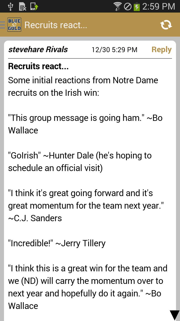 BlueandGold.com is America’s foremost authority on Notre Dame football and offers the best Irish football recruiting coverage on the web. Enjoy daily team news and recruiting updates, comprehensive game coverage, plus analysis, podcasts, videos and more. Login to your Rivals membership to access premium content and the message boards, or just use the app to check stats, rosters, schedules and more. Download the app today and start enjoying the ultimate Irish fan experience everywhere you go!