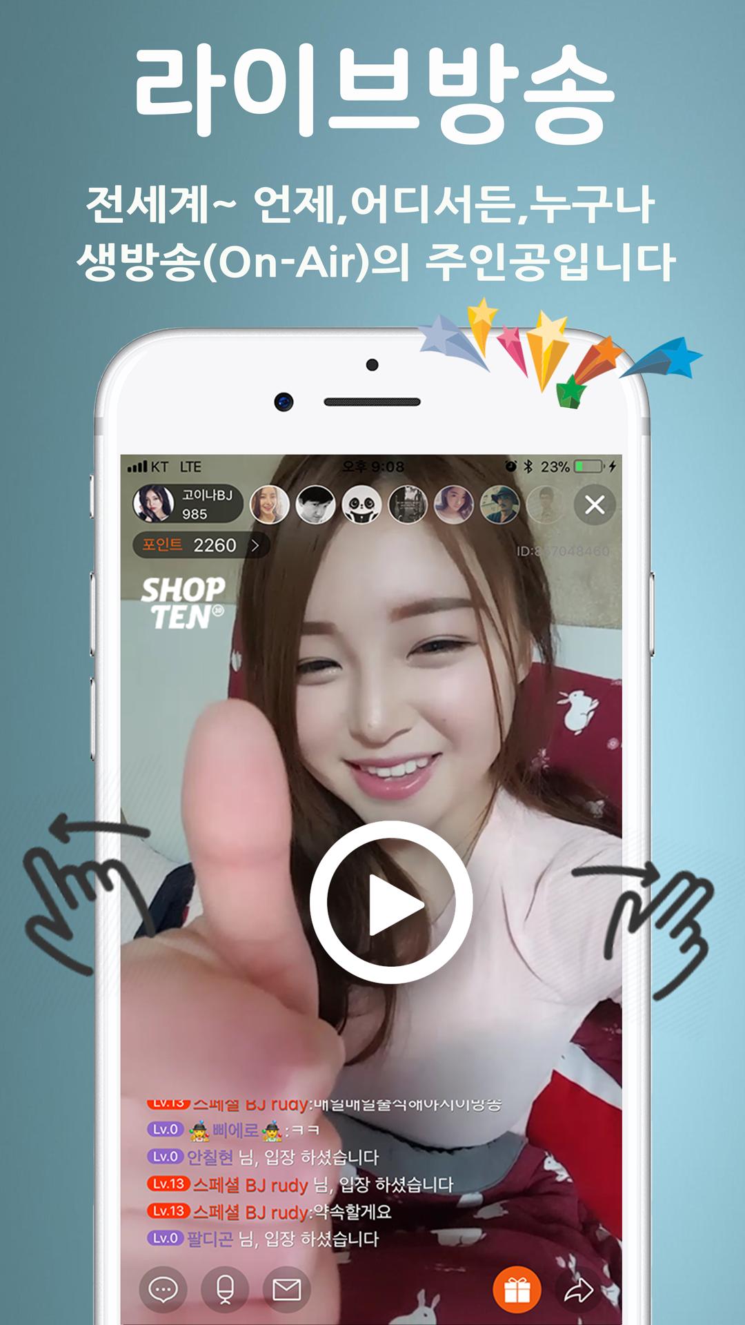 This is the best live video service in Korea that provides broadcasting features using the camera of Android devices.