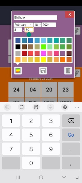 Countdown for the events, such as: