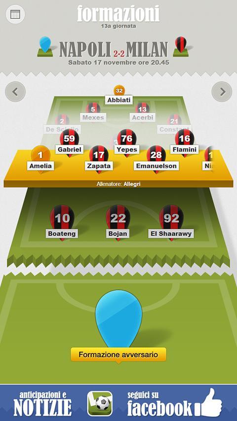 The app let you find the probable lineups of all the italian Serie A teams before the start of the matches and the scores. You'll be always updated about the best football league of the world!