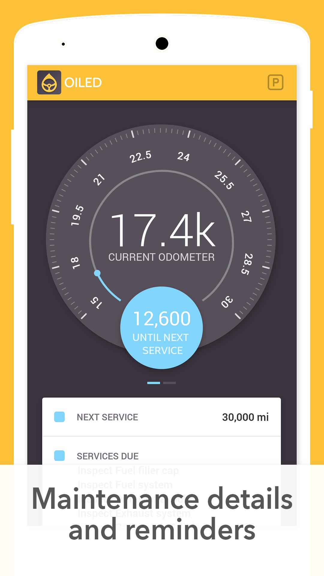 After installing Oiled and telling it what kind of car you have, you don't have to do anything. Oiled runs automatically in the background and will alert you when your next scheduled maintenance is due.