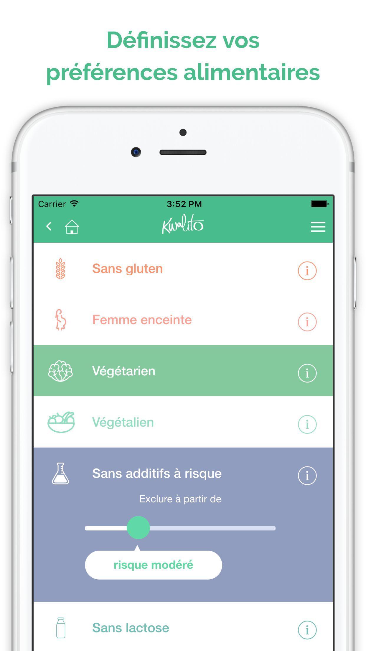 Kwalito deciphers the list of ingredients and filters to allow you to regain control over your diet. Whether you are allergic, intolerant, vegetarian, vegan, pregnant or just want to avoid potentially harmful ingredients (some colors, preservatives, hydrogenated or other fats), just scan the barcode of a product to find out if you can eat it.