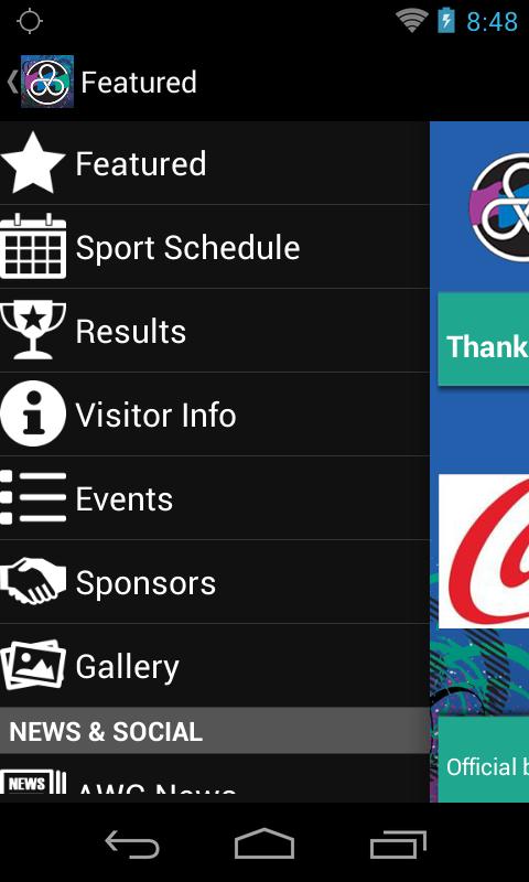 Share AWG 2014 status updates to your Facebook and Twitter account and photos to your Facebook directly from the app; view AWG 2014 photos and videos on Instagram and YouTube – all directly from within the AWG 2014 app. Win prizes by playing in-app games like AWG 2014 Trivia and Scavenger Hunt.